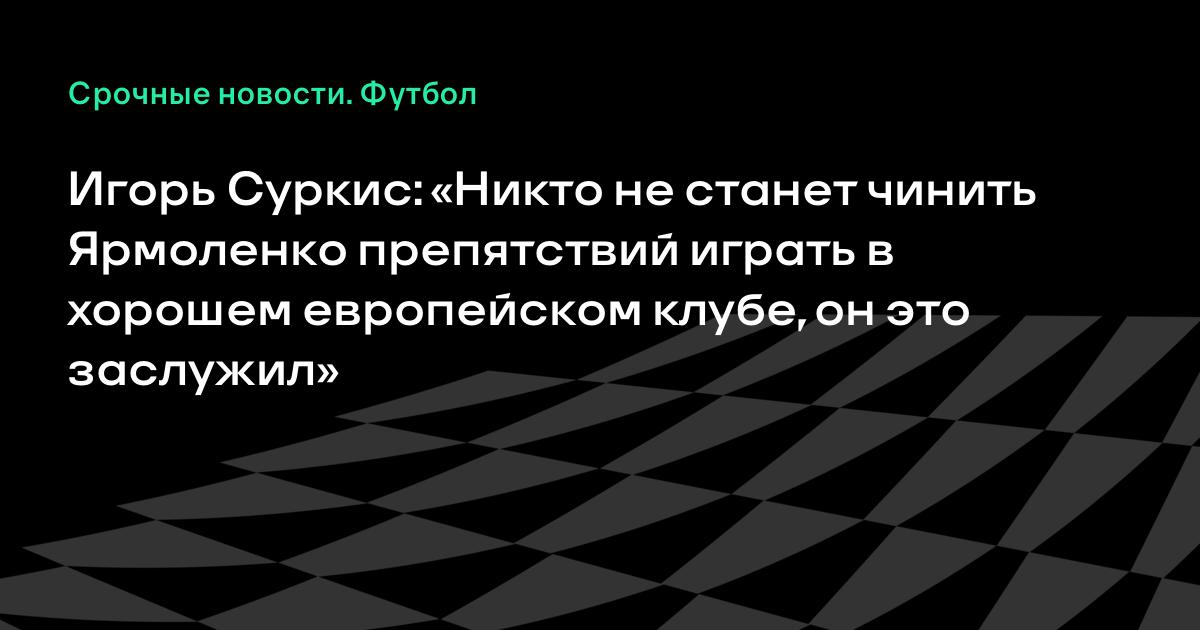 Игорь Суркис: «Никто не станет чинить Ярмоленко препятствий играть в хорошем европейском клубе, он это заслужил»