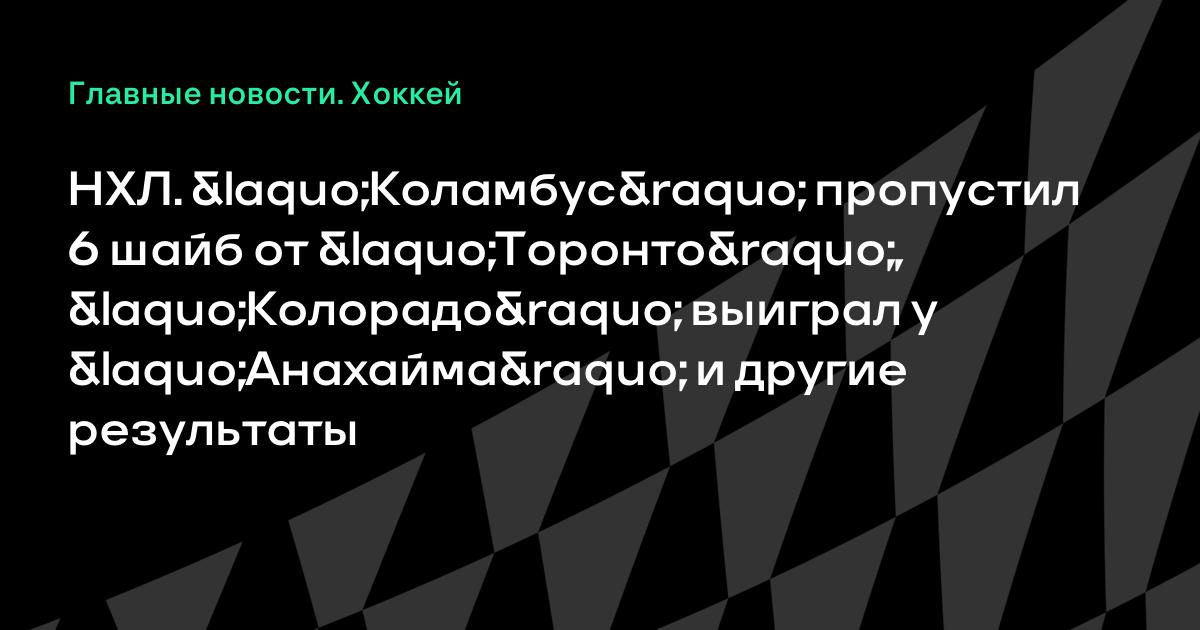 НХЛ. «Коламбус» пропустил 6 шайб от «Торонто», «Колорадо» выиграл у «Анахайма» и другие результаты