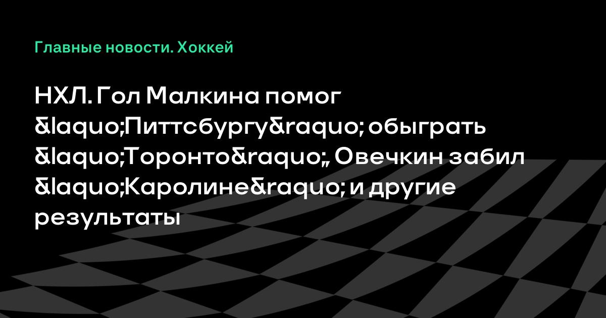 НХЛ. Гол Малкина помог «Питтсбургу» обыграть «Торонто», Овечкин забил «Каролине» и другие результаты