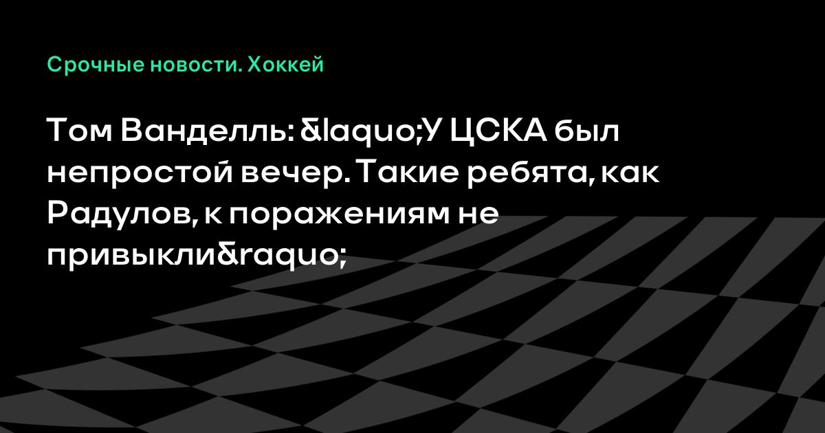 Том Ванделль: «У ЦСКА был непростой вечер. Такие ребята, как Радулов, к поражениям не привыкли»