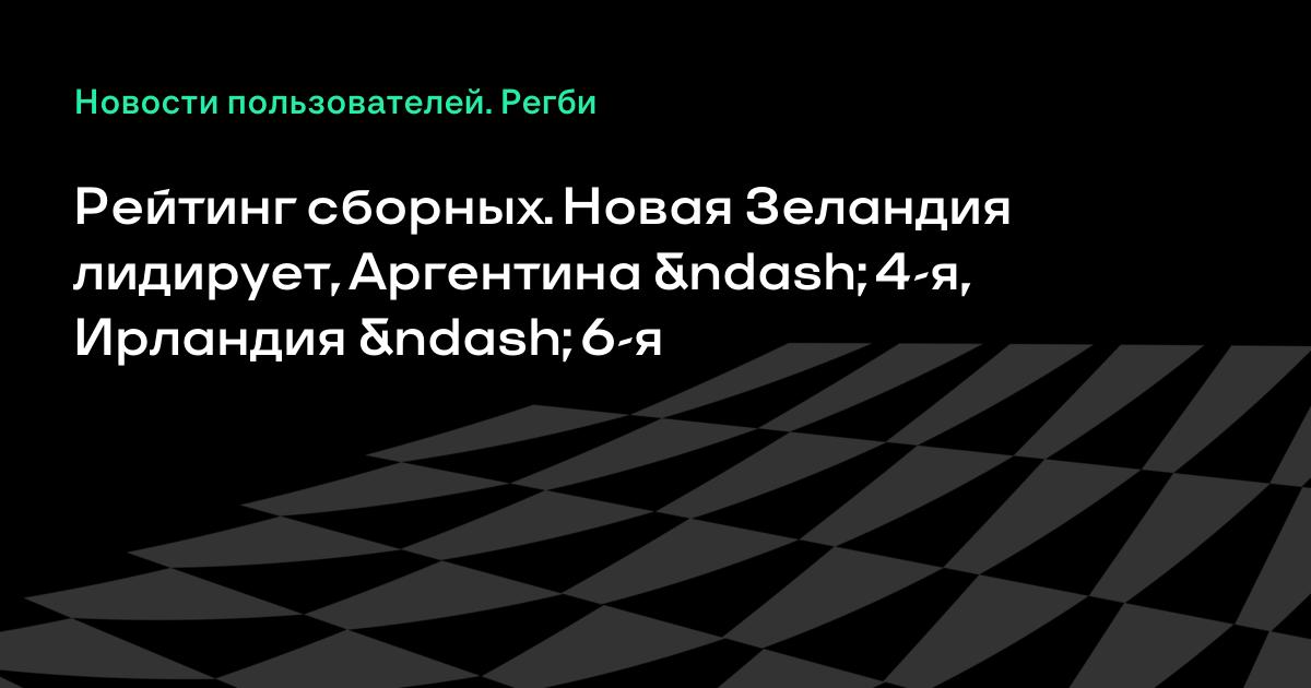 Рейтинг сборных. Новая Зеландия лидирует, Аргентина – 4-я, Ирландия – 6-я