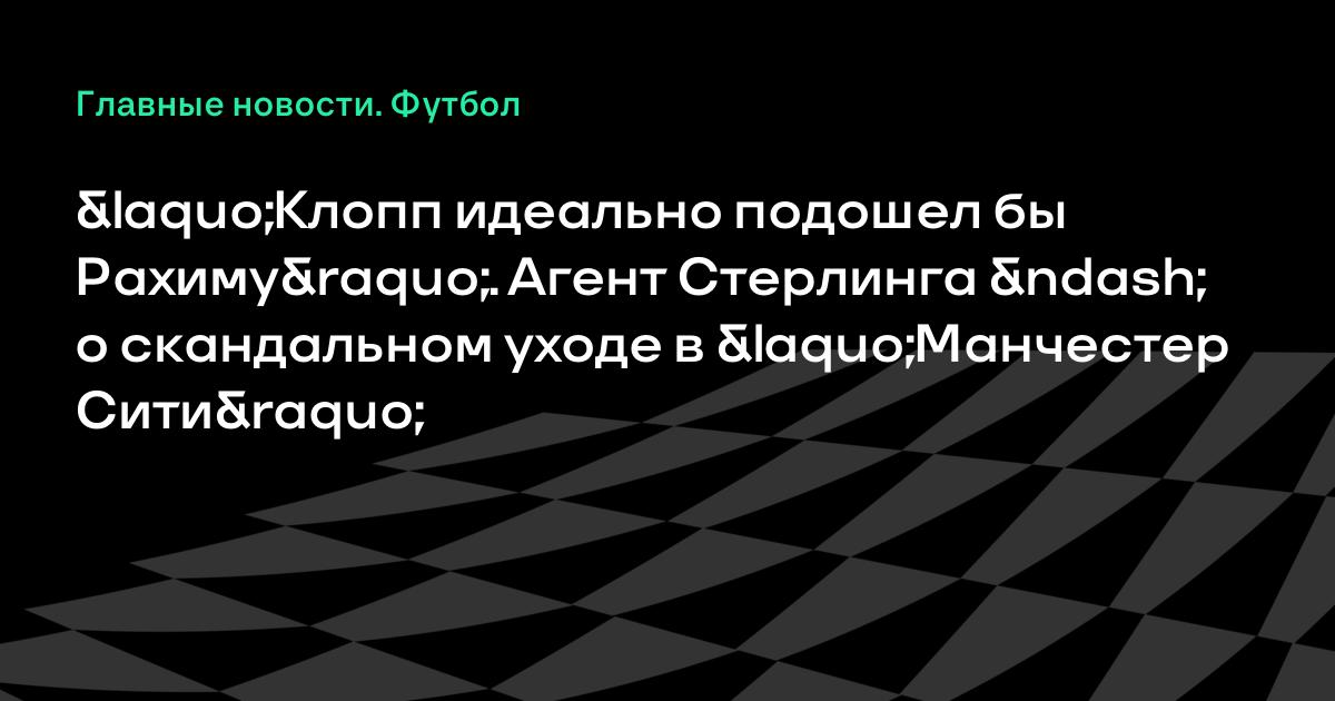 «Клопп идеально подошел бы Рахиму». Агент Стерлинга – о скандальном уходе в «Манчестер Сити»