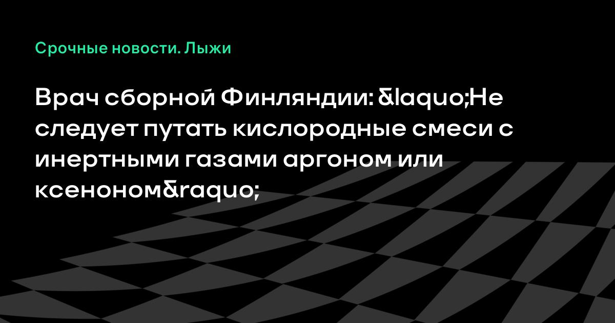 Врач сборной Финляндии: «Не следует путать кислородные смеси с инертными газами аргоном или ксеноном»