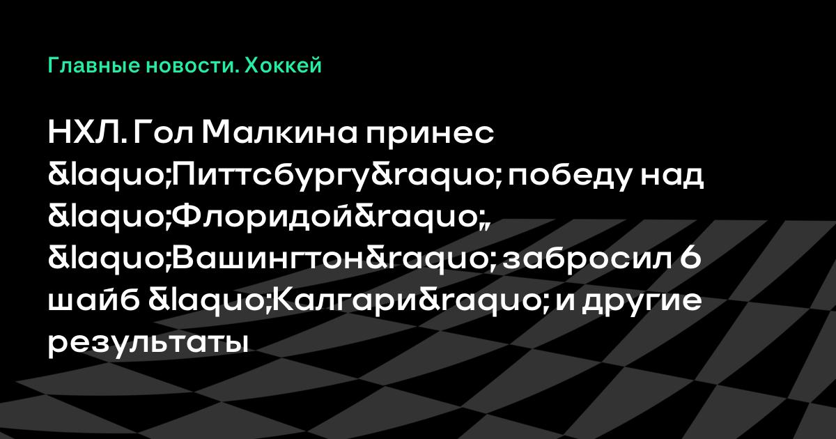 НХЛ. Гол Малкина принес «Питтсбургу» победу над «Флоридой», «Вашингтон» забросил 6 шайб «Калгари» и другие результаты