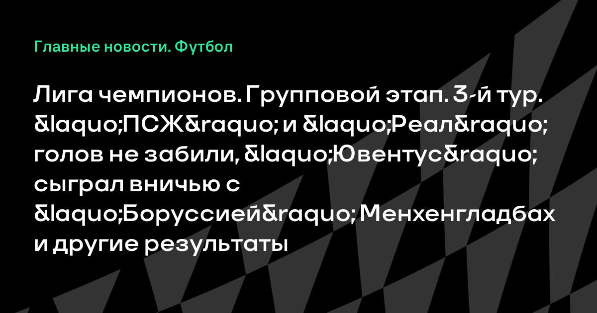 Лига чемпионов. Групповой этап. 3-й тур. «ПСЖ» и «Реал» голов не забили, «Ювентус» сыграл вничью с «Боруссией» Менхенгладбах и другие результаты