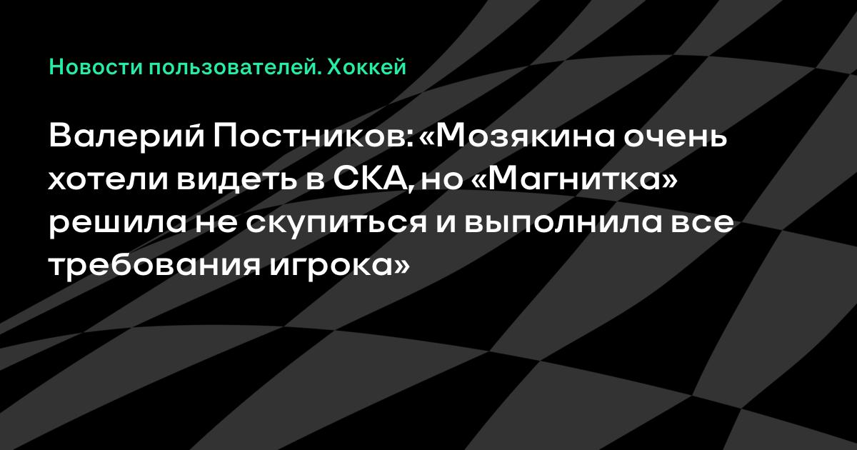 Валерий Постников: «Мозякина очень хотели видеть в СКА, но «Магнитка» решила не скупиться и выполнила все требования игрока»