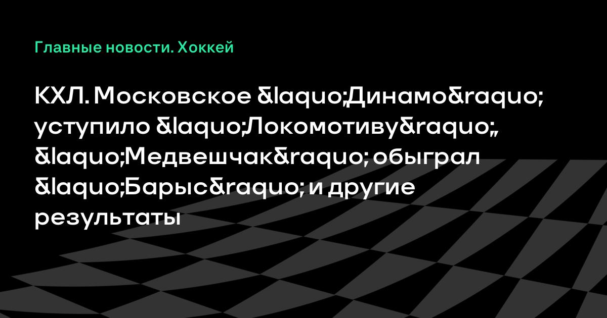 КХЛ. Московское «Динамо» уступило «Локомотиву», «Медвешчак» обыграл «Барыс» и другие результаты