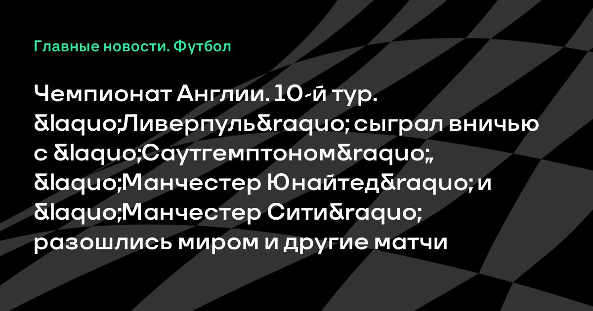 Чемпионат Англии. 10-й тур. «Ливерпуль» сыграл вничью с «Саутгемптоном», «Манчестер Юнайтед» и «Манчестер Сити» разошлись миром и другие матчи
