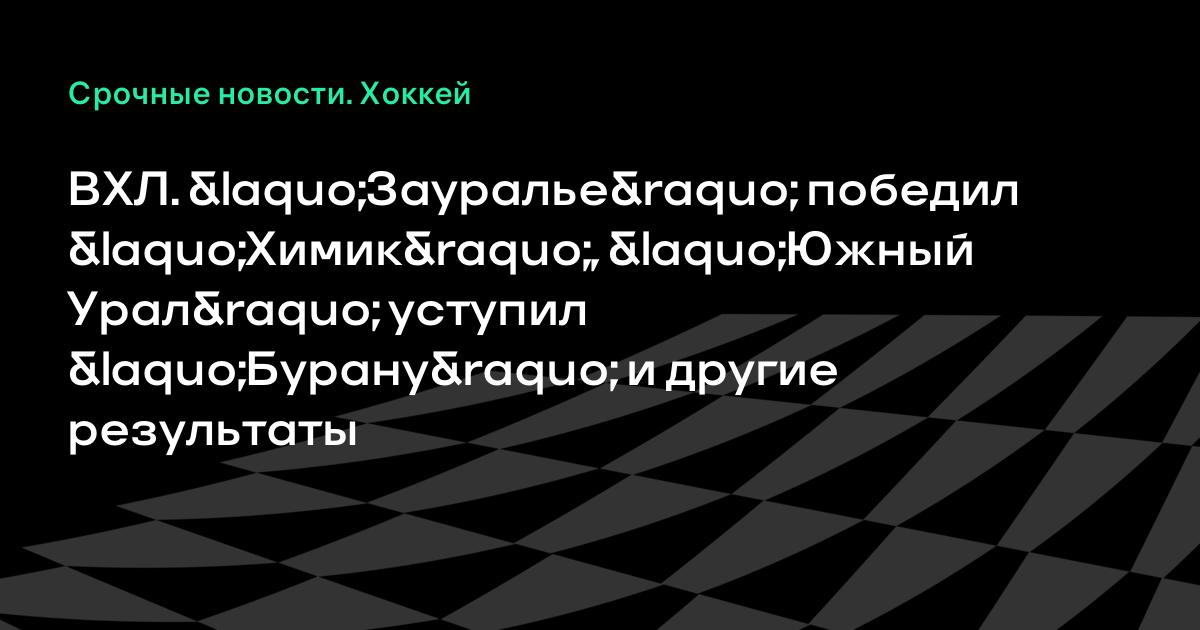 27 октября 2015, 21:50 ВХЛ. «Зауралье» победил «Химик», «Южный Урал» уступил «Бурану» и другие результаты Сегодня в ВХЛ прошли 6 матчей регулярного чемпионата. ВХЛ Регулярный чемпионат Зауралье – Химик – 4:0 (1:0, 2:0, 1:0) Южный Урал – Буран – 4:5 (0:1, 3:0, 1:4) Челмет – Звезда – 1:3 (0:0, 0:2, 1:1) Спутник – Ижсталь – 3:2 (2:1, 1:1, 0:0) Рубин – ХК Рязань – 0:1 (0:0, 0:0, 0:1) Молот-Прикамье – Торос – 2:7 (0:1, 1:3, 1:3) Хоккей Ижсталь Зауралье Спутник Молот Челмет Торос Южный Урал Рубин Химик Воскресенск результаты матчей Рязань-ВДВ ВХЛ Буран Звезда Москва