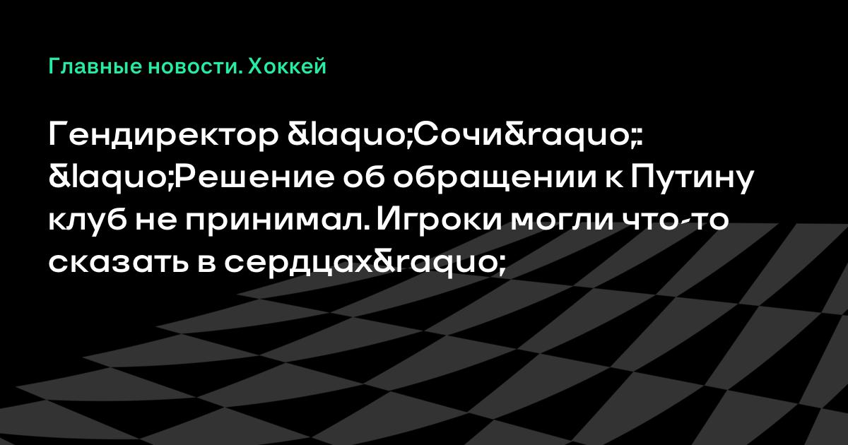 Гендиректор «Сочи»: «Решение об обращении к Путину клуб не принимал. Игроки могли что-то сказать в сердцах»