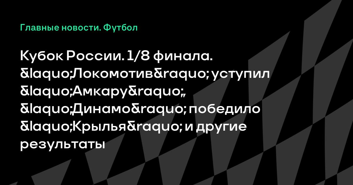 Кубок России. 1/8 финала. «Локомотив» уступил «Амкару», «Динамо» победило «Крылья» и другие результаты