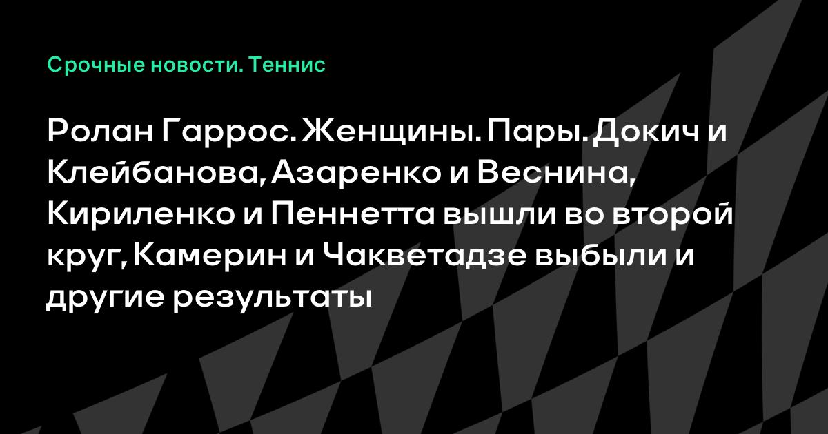 Ролан Гаррос. Женщины. Пары. Докич и Клейбанова, Азаренко и Веснина, Кириленко и Пеннетта вышли во второй круг, Камерин и Чакветадзе выбыли и другие результаты