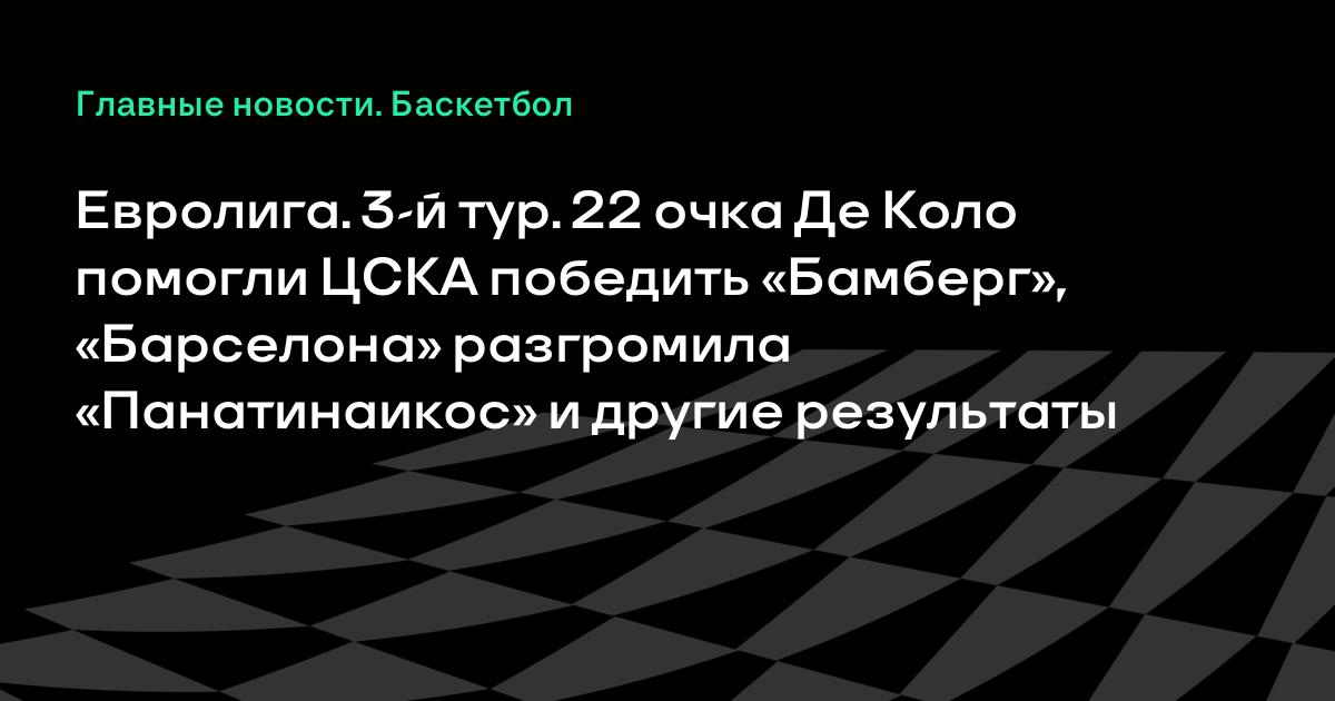 Евролига. 3-й тур. 22 очка Де Коло помогли ЦСКА победить «Бамберг», «Барселона» разгромила «Панатинаикос» и другие результаты