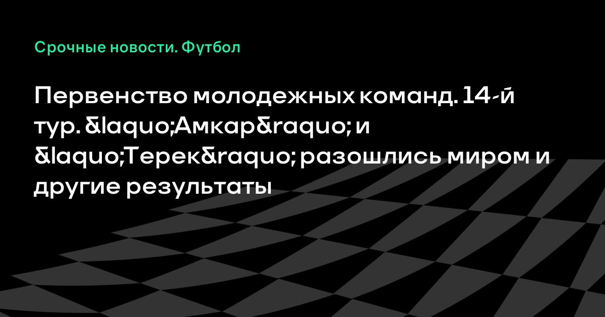Первенство молодежных команд. 14-й тур. «Амкар» и «Терек» разошлись миром и другие результаты
