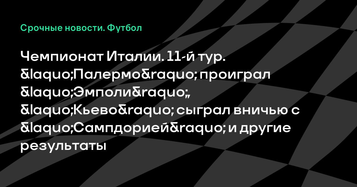Чемпионат Италии. 11-й тур. «Палермо» проиграл «Эмполи», «Кьево» сыграл вничью с «Сампдорией» и другие результаты