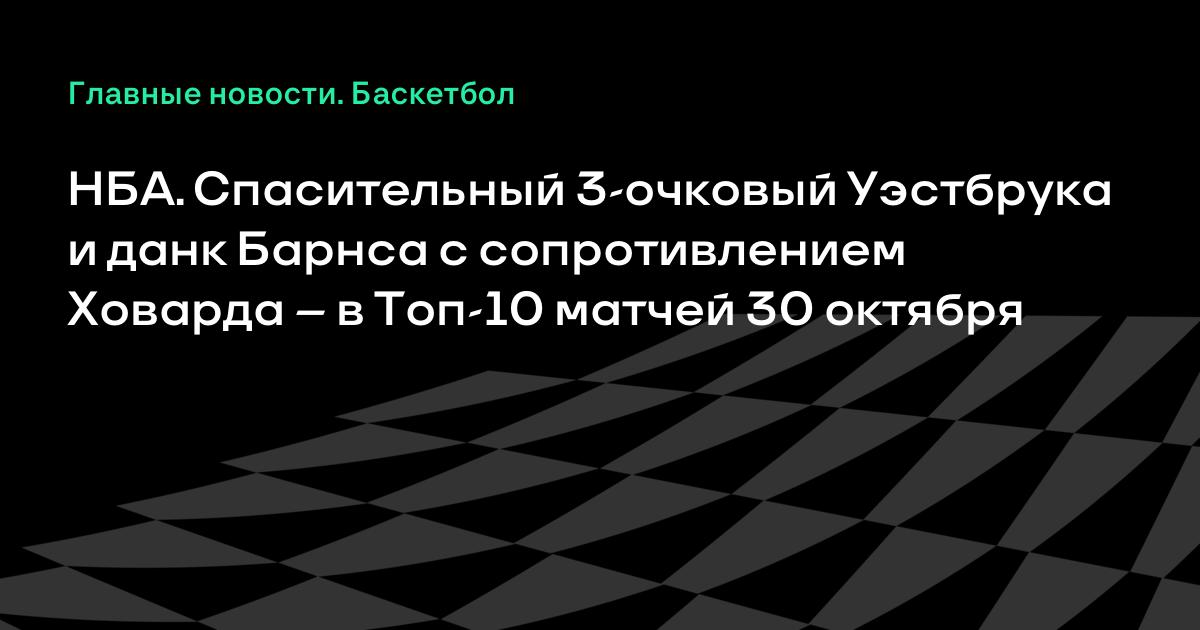 НБА. Спасительный 3-очковый Уэстбрука и данк Барнса с сопротивлением Ховарда – в Топ-10 матчей 30 октября