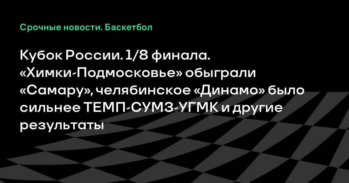 В субботу, 31 октября, в рамках первых матчей 1/8 финала Кубка России «Химки-Подмосковье» обыграли «Самару» (75:64), челябинское «Динамо» победило ТЕМП-СУМЗ-УГМК (77:72).