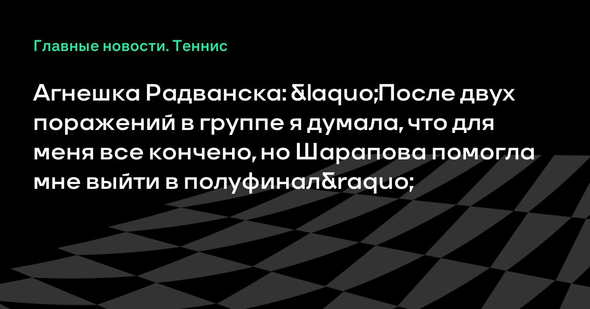 Агнешка Радванска: «После двух поражений в группе я думала, что для меня все кончено, но Шарапова помогла мне выйти в полуфинал»