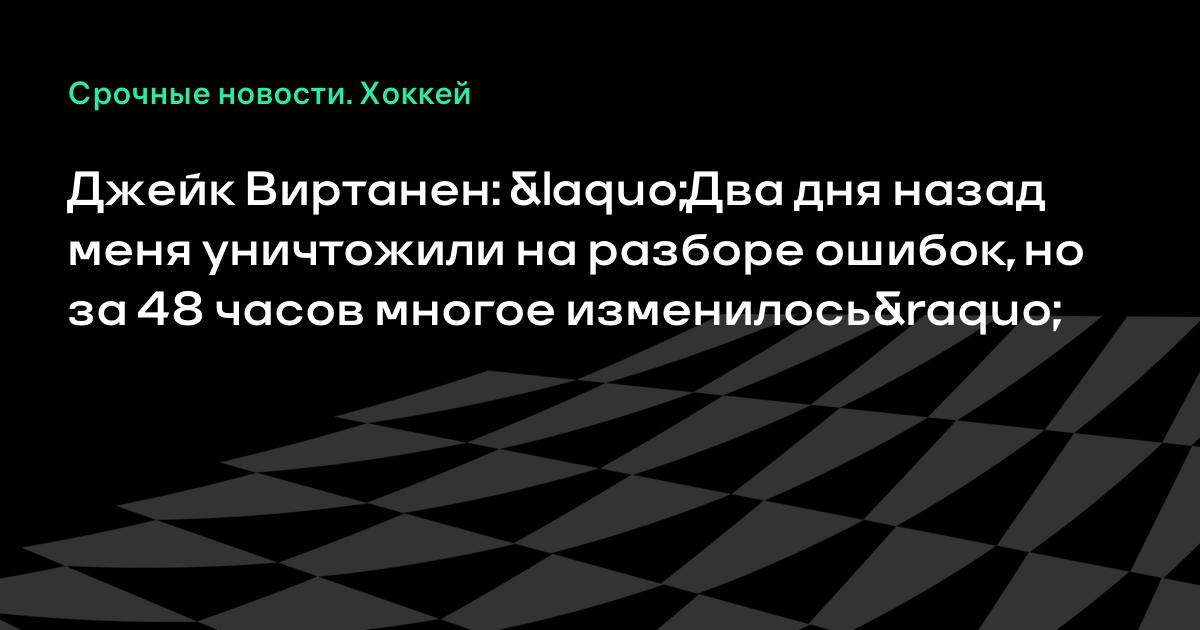 Джейк Виртанен: «Два дня назад меня уничтожили на разборе ошибок, но за 48 часов многое изменилось»