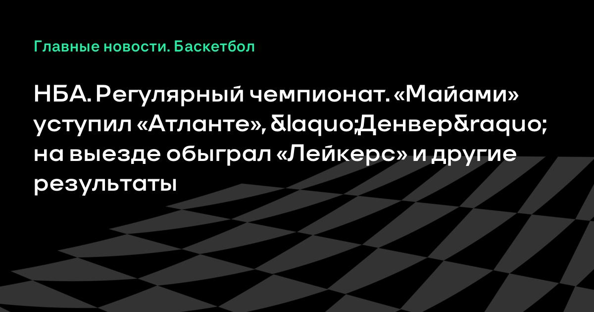 НБА. Регулярный чемпионат. «Майами» уступил «Атланте», «Денвер» на выезде обыграл «Лейкерс» и другие результаты