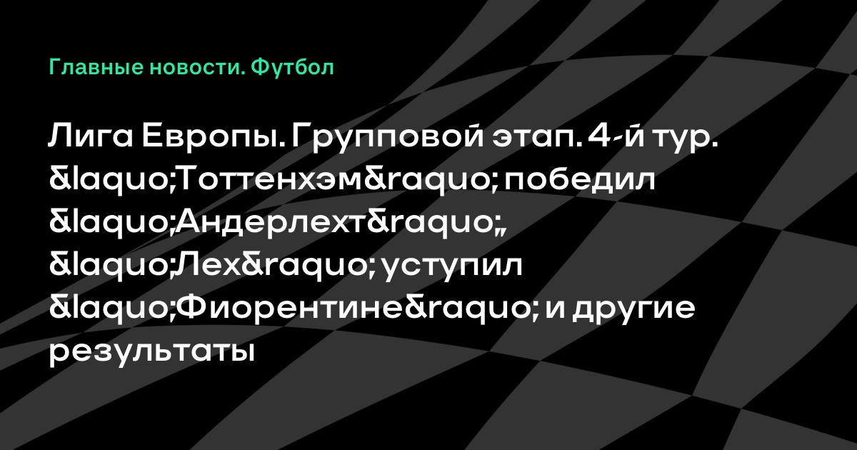 Лига Европы. Групповой этап. 4-й тур. «Тоттенхэм» победил «Андерлехт», «Лех» уступил «Фиорентине» и другие результаты