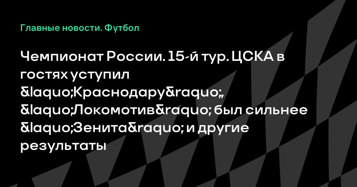 Чемпионат России. 15-й тур. ЦСКА в гостях уступил «Краснодару», «Локомотив» был сильнее «Зенита» и другие результаты