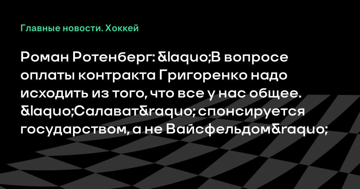 Роман Ротенберг: «В вопросе оплаты контракта Григоренко надо исходить из того, что все у нас общее. «Салават» спонсируется государством, а не Вайсфельдом»