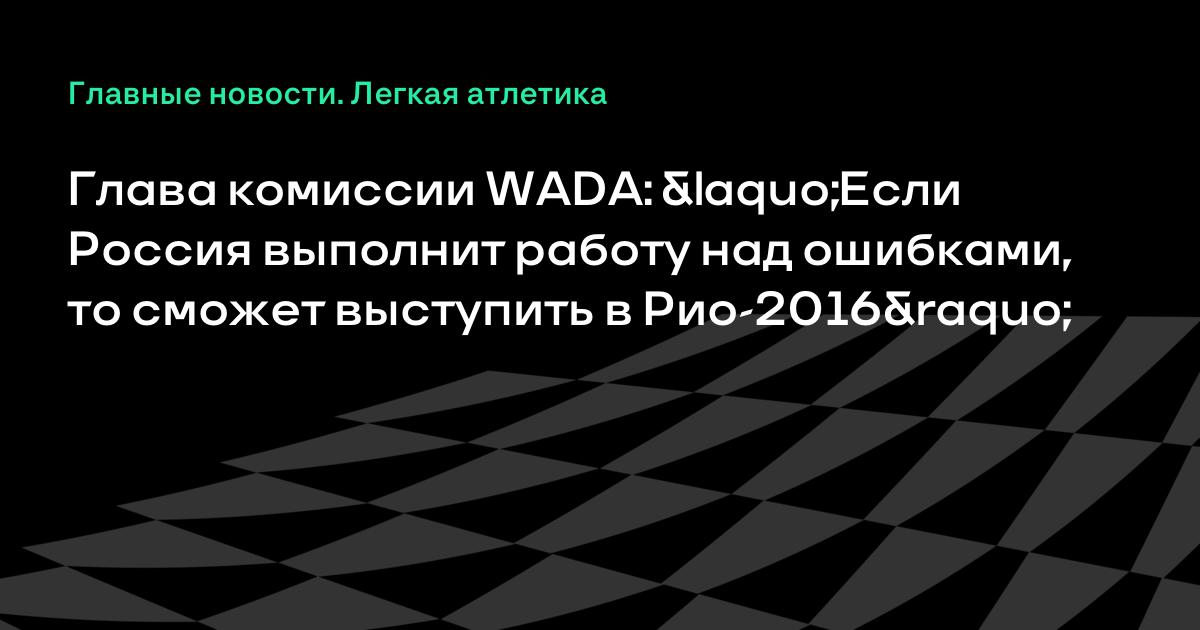 Глава комиссии WADA: «Если Россия выполнит работу над ошибками, то сможет выступить в Рио-2016»