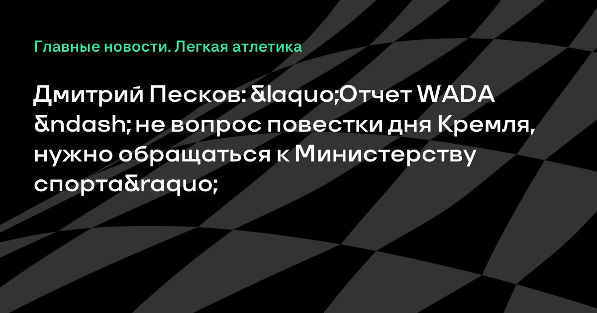 Дмитрий Песков: «Отчет WADA – не вопрос повестки дня Кремля, нужно обращаться к Министерству спорта»