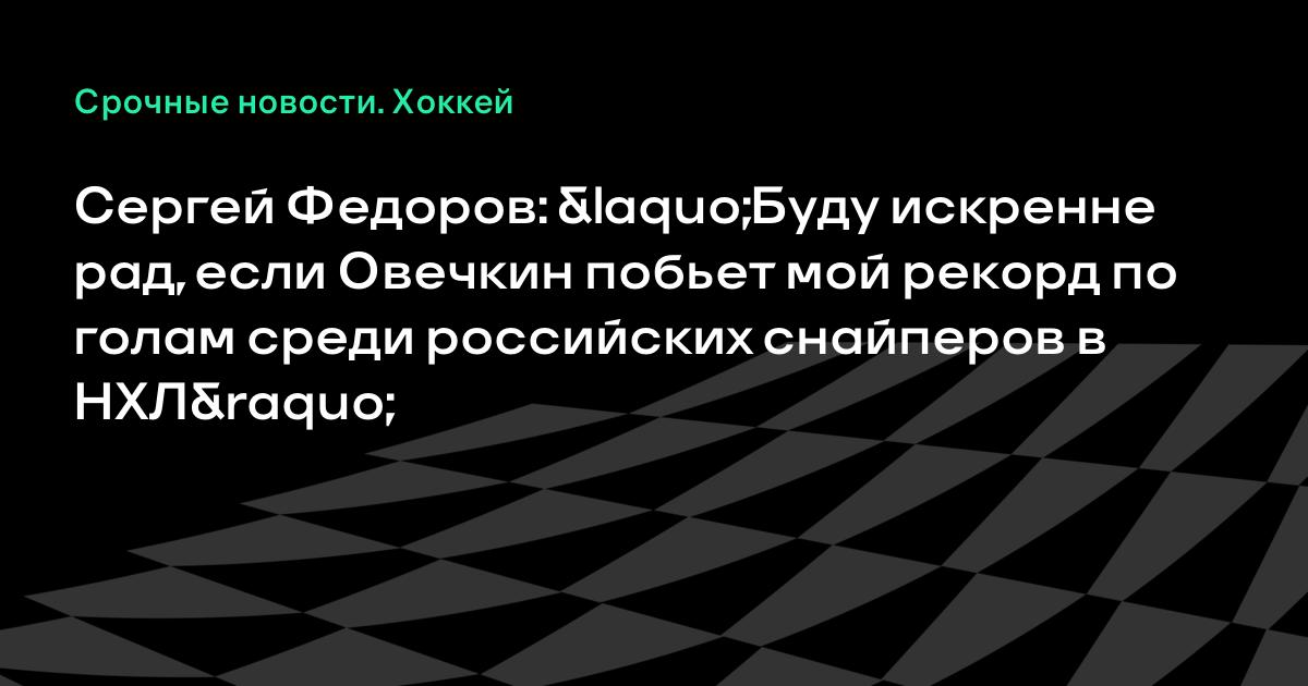 Сергей Федоров: «Буду искренне рад, если Овечкин побьет мой рекорд по голам среди российских снайперов в НХЛ»