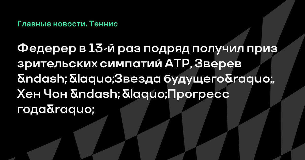 Федерер в 13-й раз подряд получил приз зрительских симпатий ATP, Зверев – «Звезда будущего», Хен Чон – «Прогресс года»