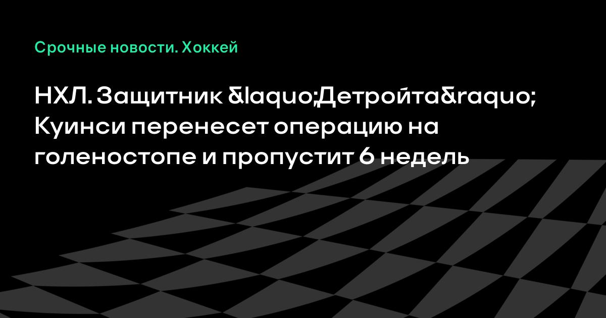 НХЛ. Защитник «Детройта» Куинси перенесет операцию на голеностопе и пропустит 6 недель