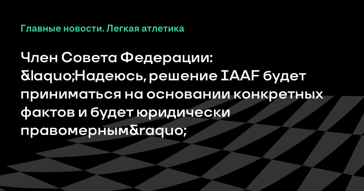 Член Совета Федерации: «Надеюсь, решение IAAF будет приниматься на основании конкретных фактов и будет юридически правомерным»