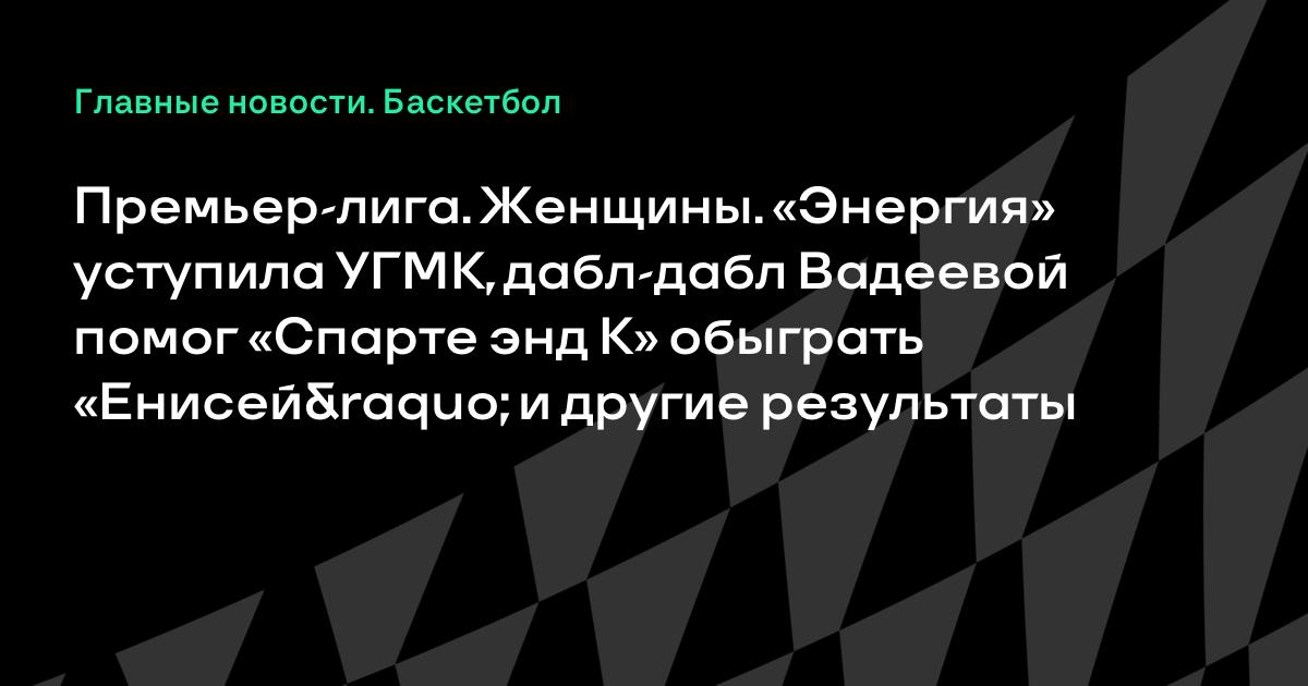 Премьер-лига. Женщины. «Энергия» уступила УГМК, дабл-дабл Вадеевой помог «Спарте энд К» обыграть «Енисей» и другие результаты