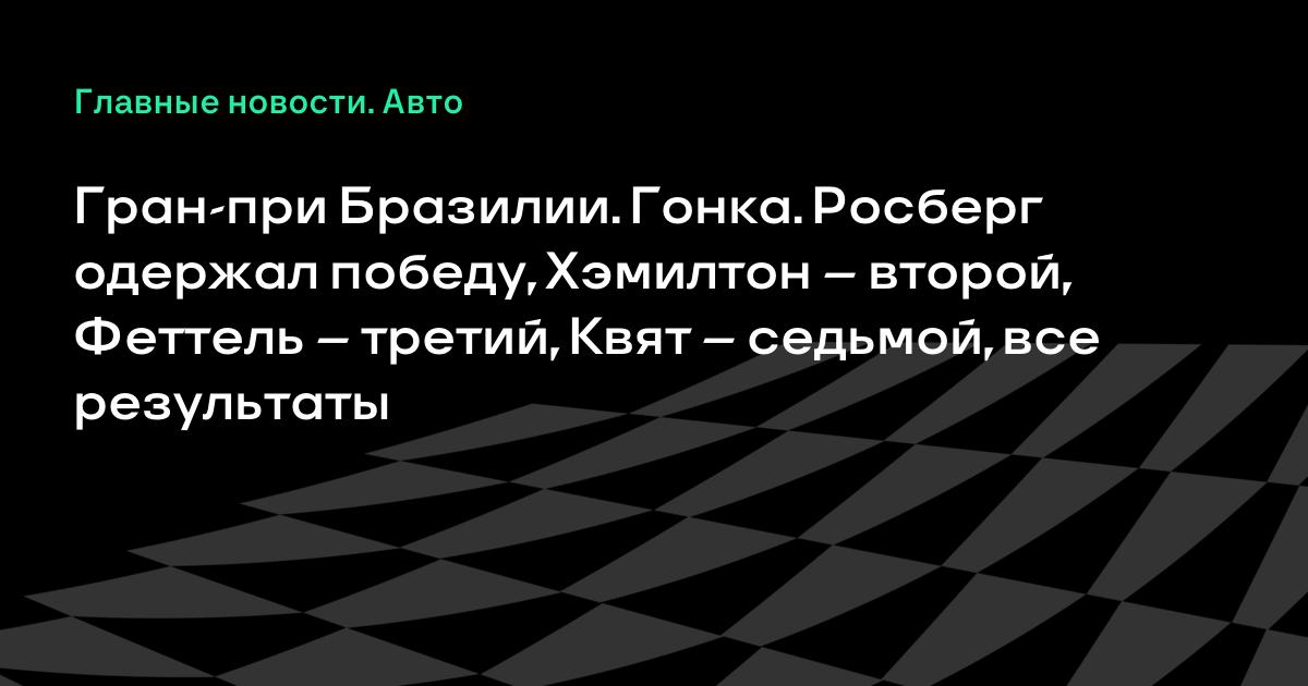 Гран-при Бразилии. Гонка. Росберг одержал победу, Хэмилтон – второй, Феттель – третий, Квят – седьмой, все результаты