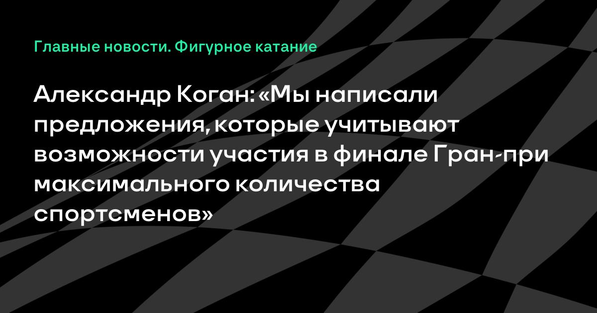 Генеральный директор Федерации фигурного катания России (ФФКР) Александр Коган рассказал о предложении в ISU по поводу формирования состава участников финала Гран-при.