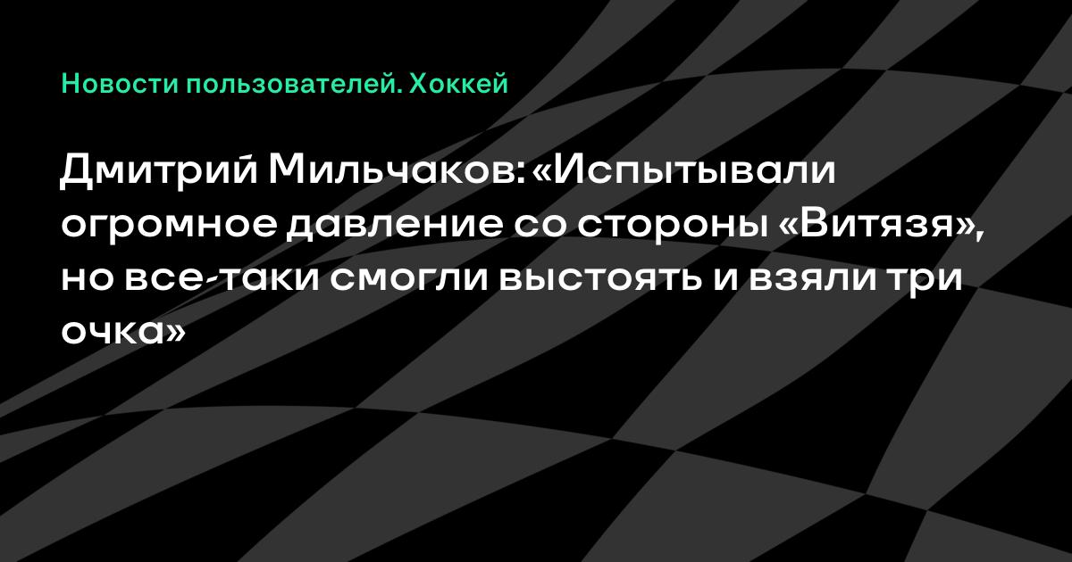 Вратарь минского «Динамо» Дмитрий Мильчаков поделился мнением после победы над «Витязем» (3:2) в матче регулярного чемпионата КХЛ.