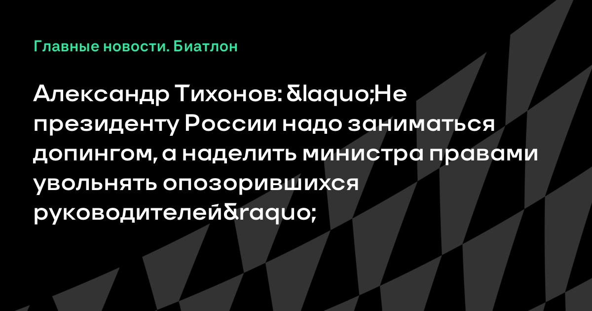 Александр Тихонов: «Не президенту России надо заниматься допингом, а наделить министра правами увольнять опозорившихся руководителей»