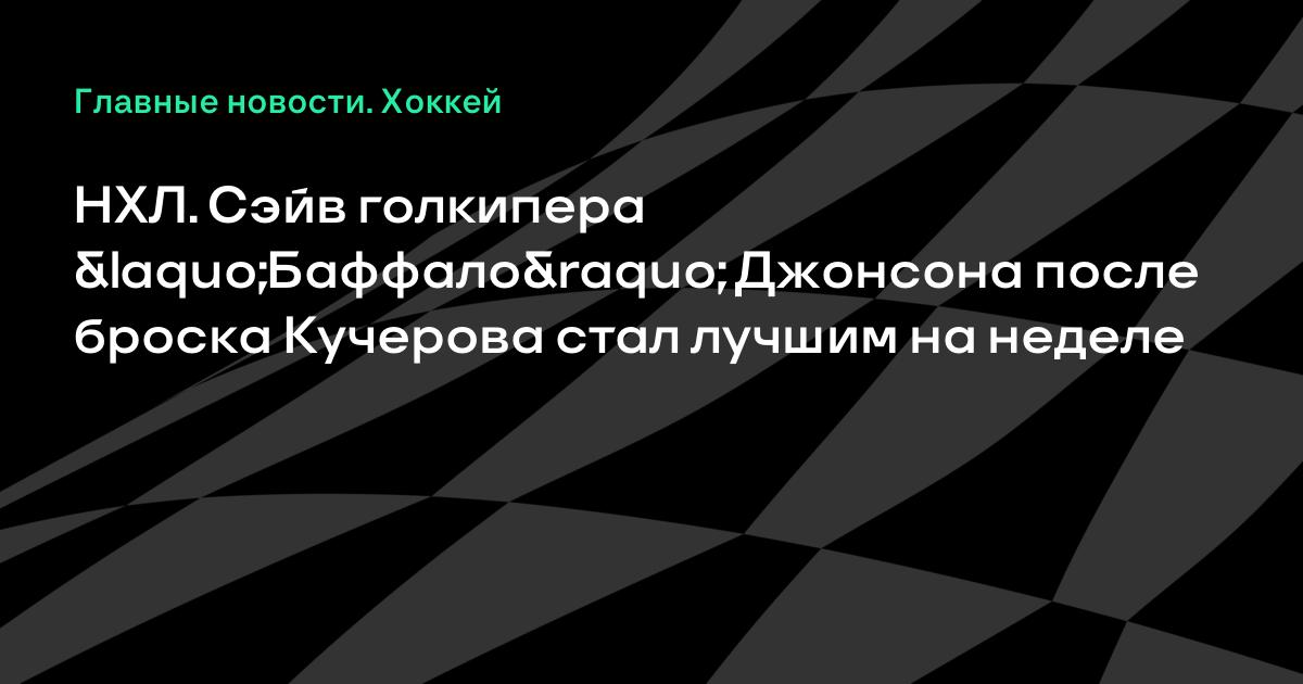 НХЛ. Сэйв голкипера «Баффало» Джонсона после броска Кучерова стал лучшим на неделе