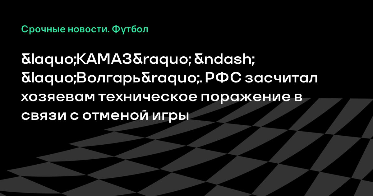 «В соответствии с частью 2 статьи 105 дисциплинарного регламента РФС за необеспечение принимающей стороной условий проведения матча в соответствии с регламентом соревнования и правилами игры, повлекшее за собой срыв матча – засчитать ФК КАМАЗ техническое поражение со счетом 0:3 в игре с ФК «Волгарь» (Астрахань)», – говорится в сообщении на официальном сайте РФС.