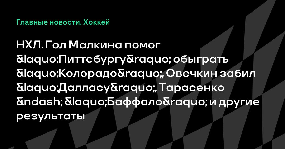НХЛ. Гол Малкина помог «Питтсбургу» обыграть «Колорадо», Овечкин забил «Далласу», Тарасенко – «Баффало» и другие результаты