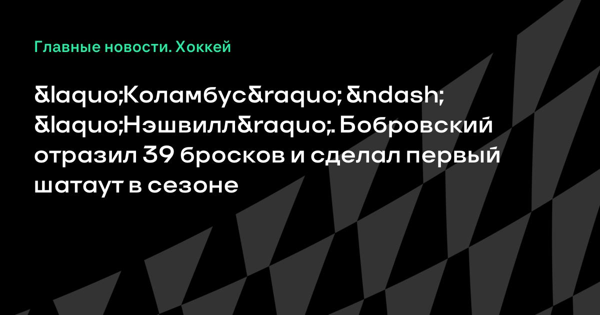 «Коламбус» – «Нэшвилл». Бобровский отразил 39 бросков и сделал первый шатаут в сезоне