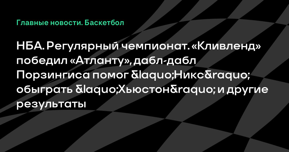 НБА. Регулярный чемпионат. «Кливленд» победил «Атланту», дабл-дабл Порзингиса помог «Никс» обыграть «Хьюстон» и другие результаты