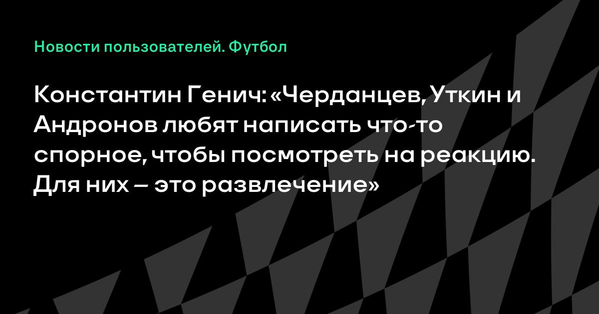 Константин Генич: «Черданцев, Уткин и Андронов любят написать что-то спорное, чтобы посмотреть на реакцию. Для них – это развлечение»