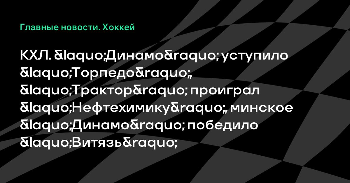 КХЛ. «Динамо» уступило «Торпедо», «Трактор» проиграл «Нефтехимику», минское «Динамо» победило «Витязь»