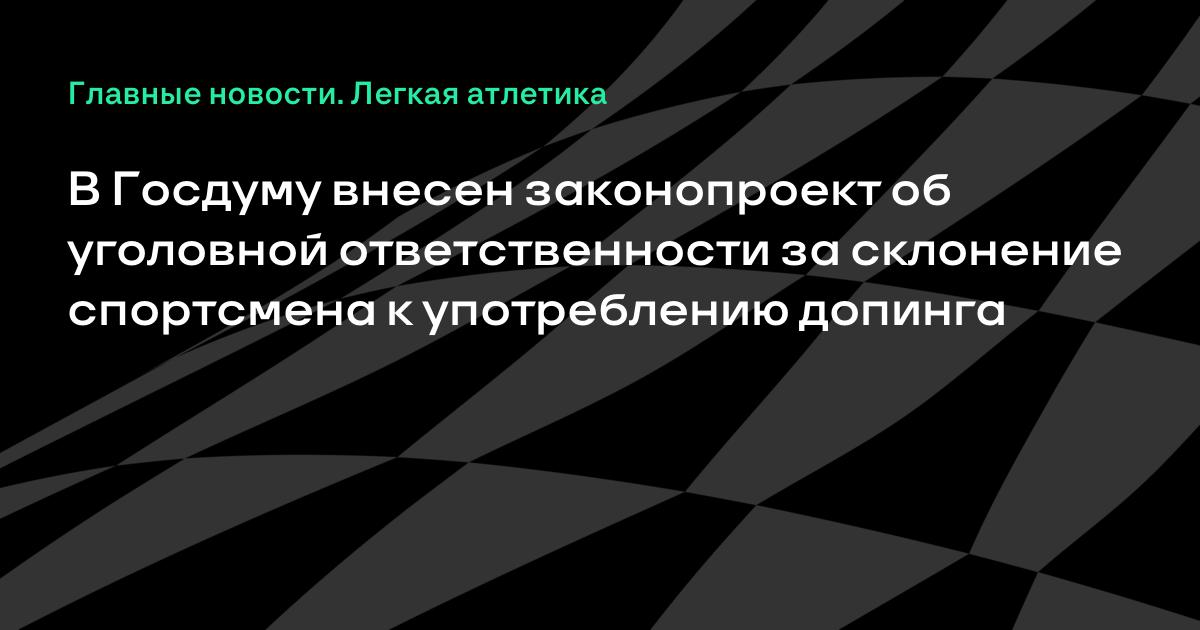 В Государственную думу внесен законопроект об установлении уголовной ответственности за склонение спортсмена к употреблению допинга.