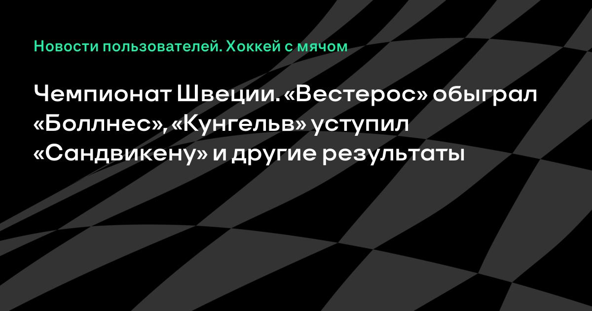 Чемпионат Швеции. «Вестерос» обыграл «Боллнес», «Кунгельв» уступил «Сандвикену» и другие результаты