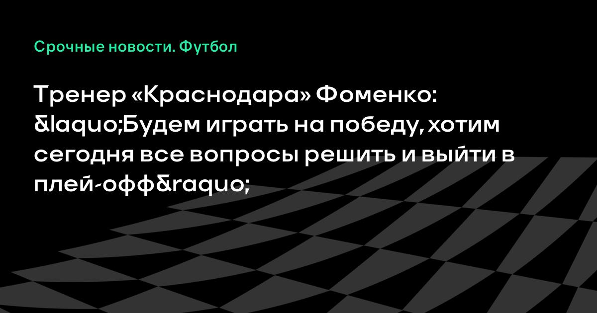 Тренер «Краснодара» Фоменко: «Будем играть на победу, хотим сегодня все вопросы решить и выйти в плей-офф»