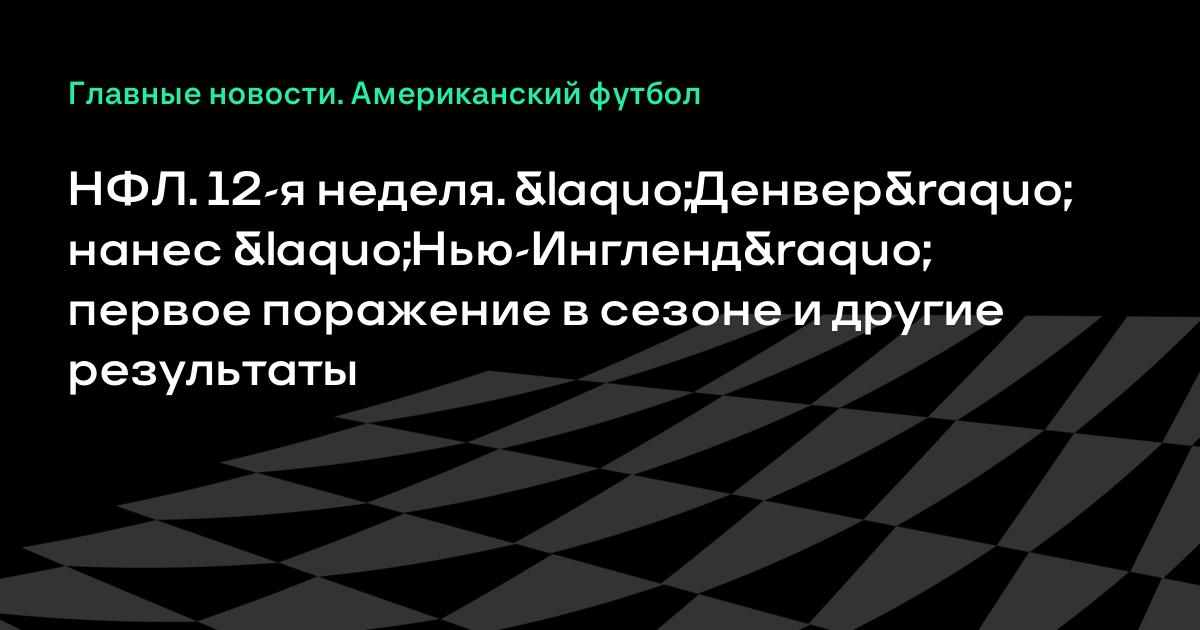 НФЛ. 12-я неделя. «Денвер» нанес «Нью-Ингленд» первое поражение в сезоне и другие результаты