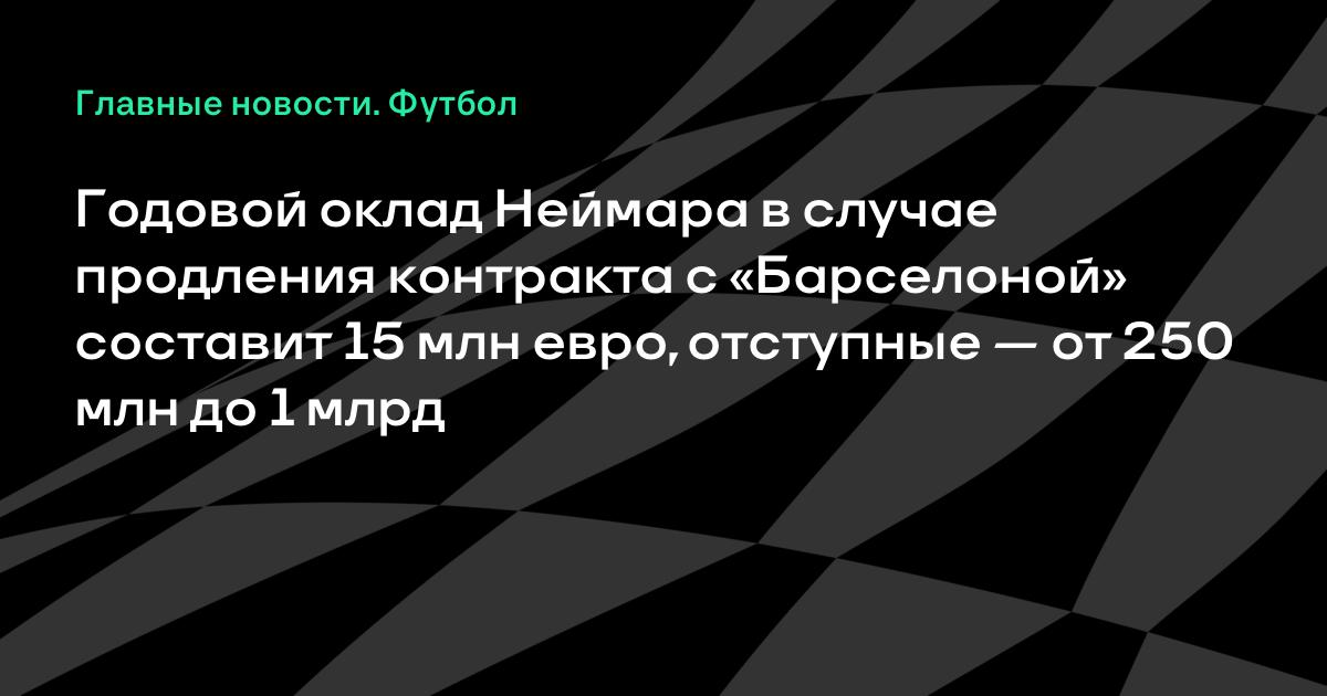 Годовой оклад Неймара в случае продления контракта с «Барселоной» составит 15 млн евро, отступные — от 250 млн до 1 млрд